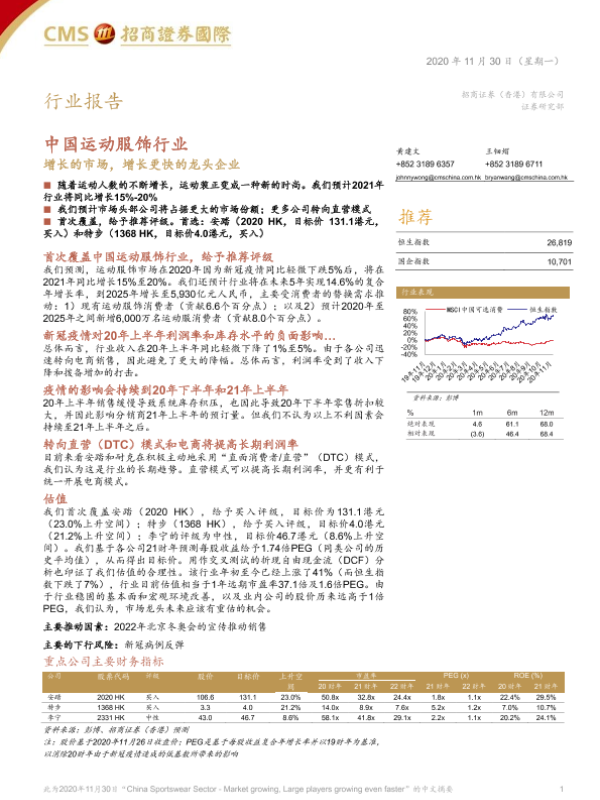 【招商证券国际】【20201130】中国运动服饰行业:增长的市场,增长更快的龙头企业-57页 行业研究