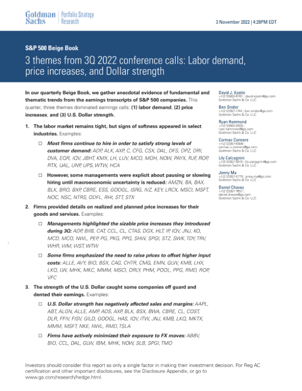 【Goldman Sachs】【20221103】2022 conference calls Labor demand, price increases, and Dollar strength-32页 行业研究