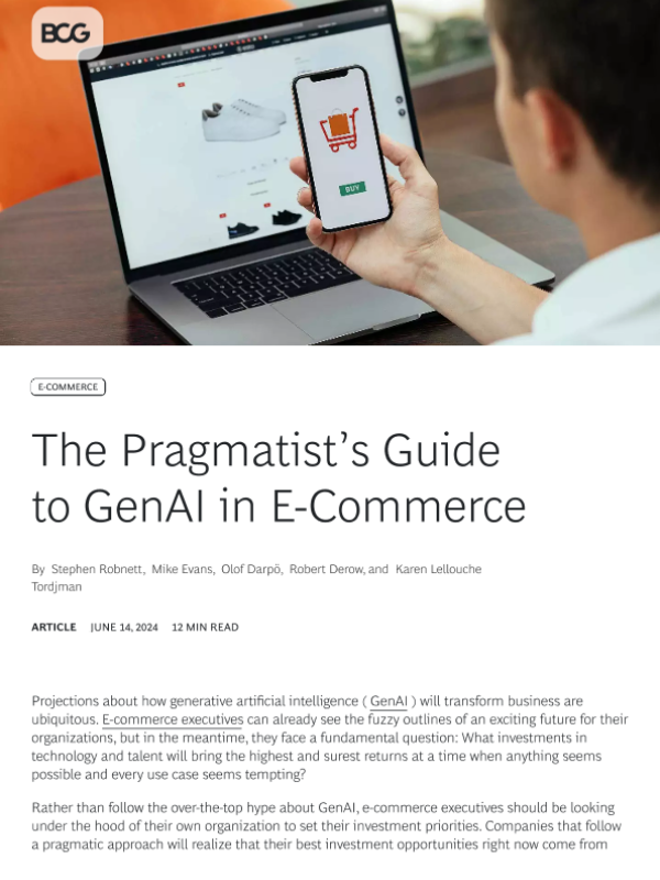 【Boston Consulting Group】【20240614】The Pragmatist’s Guide to GenAI in E-Commerce-10页 指南
