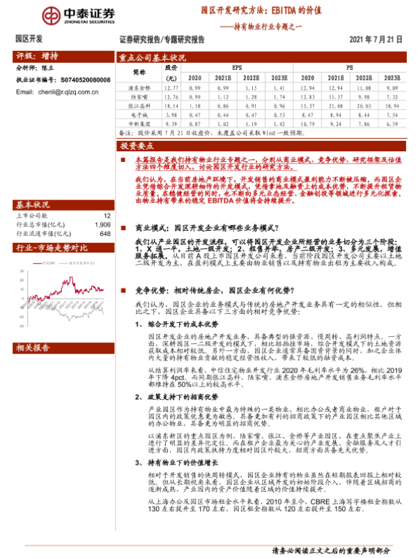 【中泰证券】【20210721】持有物业行业专题之一:园区开发研究方法,EBITDA的价值-37页 行业研究