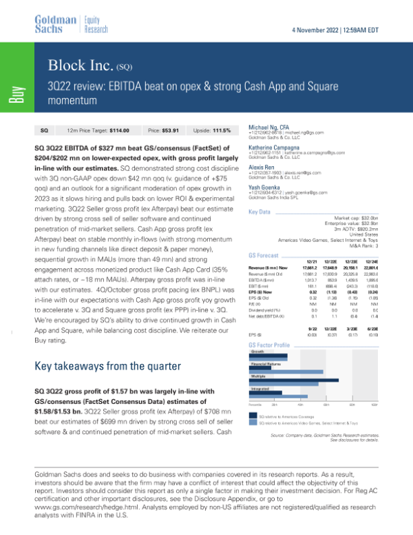 【Goldman Sachs】【20221104】3Q22 review EBITDA beat on opex & strong Cash App and Square momentum-10页 行业研究