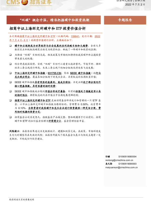 【海通证券】【20220702】招商中证上海环交所碳中和ETF投资价值分析:“双碳”概念升温,精准把握碳中和投资热潮-17页 行业研究
