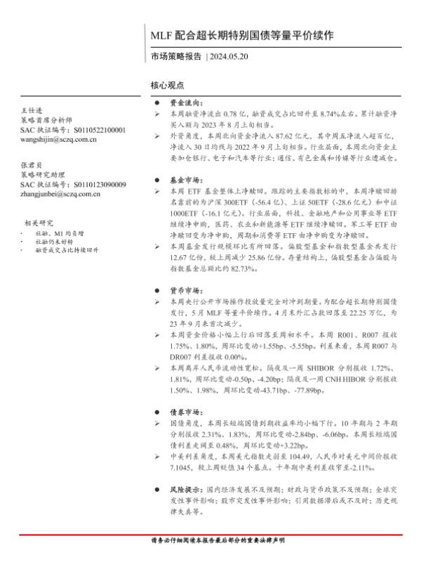 【首创证券】【20240520】市场策略报告:MLF配合超长期特别国债等量平价续作-12页 行业研究