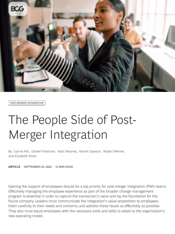【Boston Consulting Group】【20240903】The People Side of Post-Merger Integration-9页 行业研究