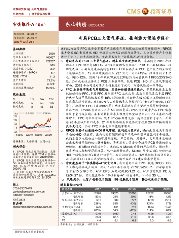【海通证券】【20200220】布局PCB三大景气赛道,盈利能力望逐步提升-31页 行业研究