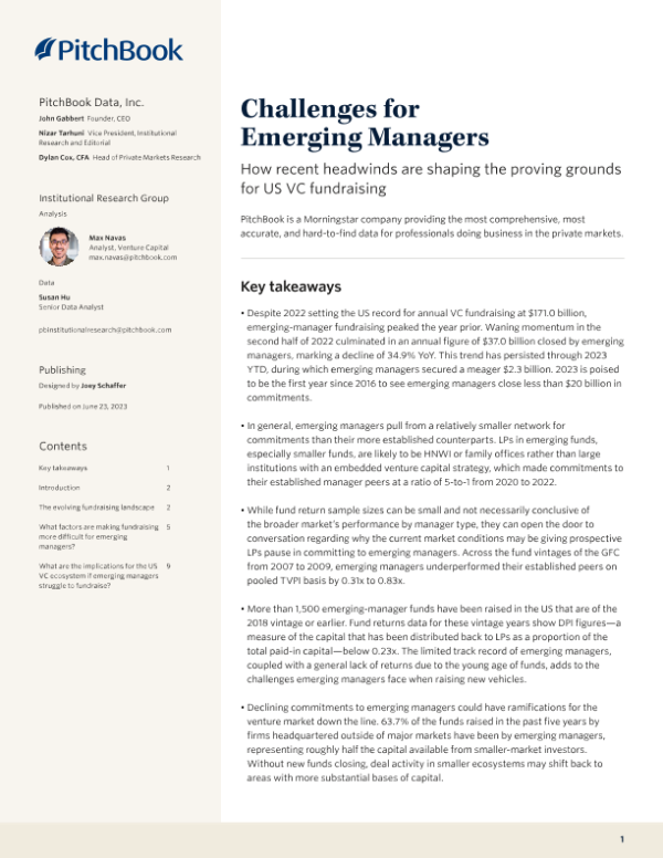 【PitchBook Data】【2023】PitchBook:新兴管理者面临的挑战-10页 行业研究