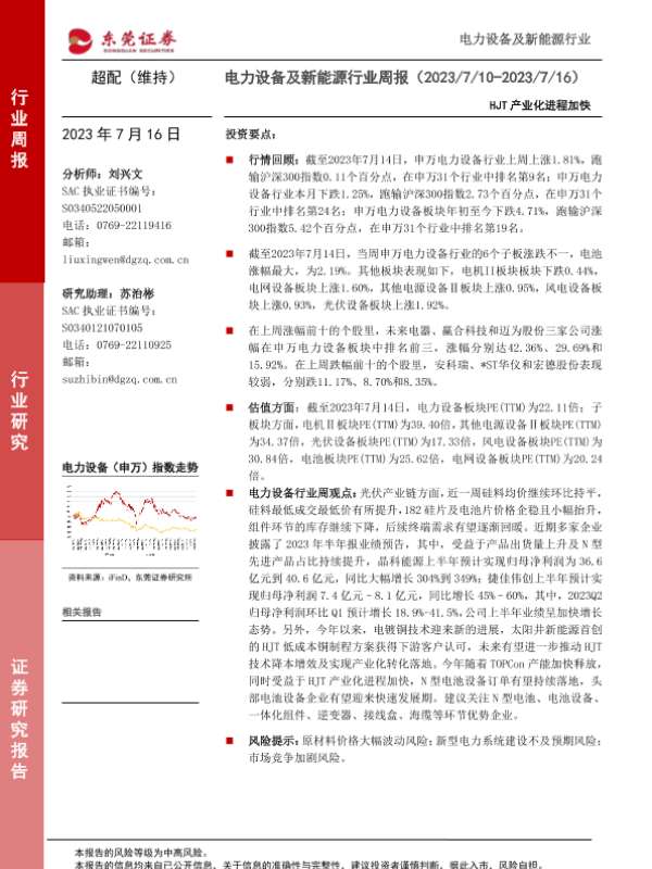 【东莞证券】【20230716】电力设备及新能源行业周报:HJT产业化进程加快-13页 行业研究