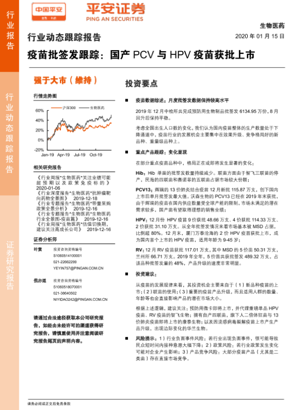 【平安证券】【20200115】疫苗批签发跟踪:国产PCV与HPV疫苗获批上市-11页 行业研究
