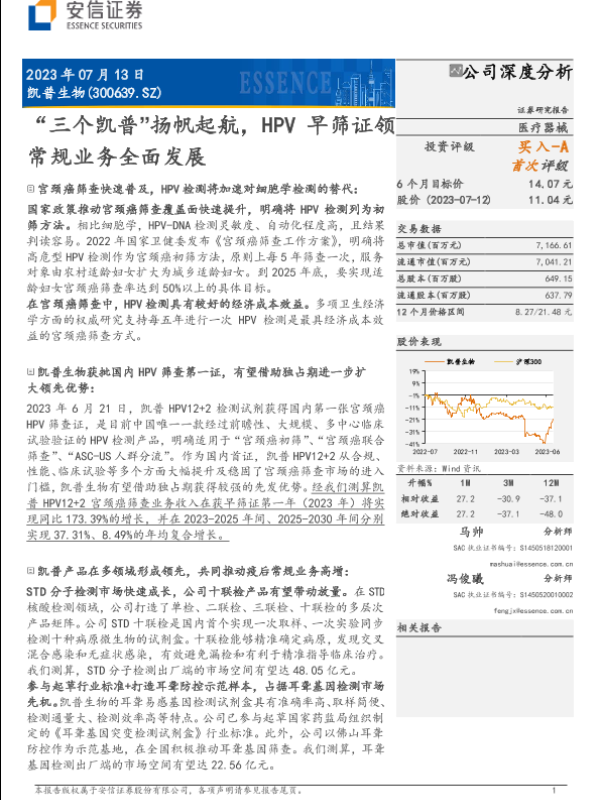 【安信证券】【20230713】凯普生物(300639)“三个凯普”扬帆起航,HPV早筛证领常规业务全面发展-31页 行业研究