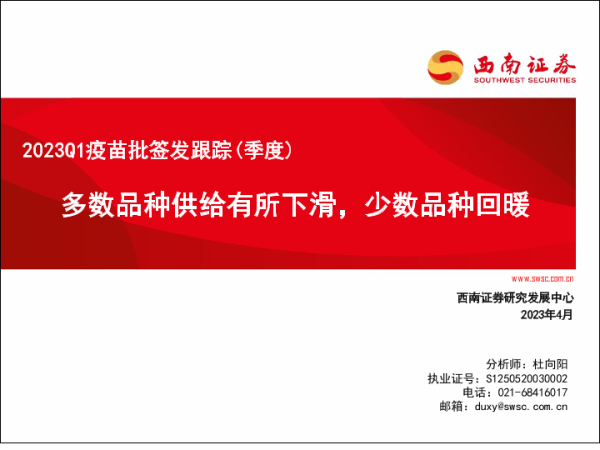 【西南证券】【20230404】医药行业2023Q1疫苗批签发跟踪(季度):多数品种供给有所下滑,少数品种回暖-62页 行业研究