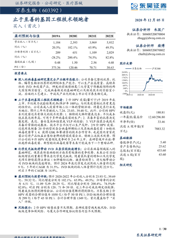 【东吴证券】【20201205】万泰生物:止于至善的基因工程技术领跑者-30页 行业研究