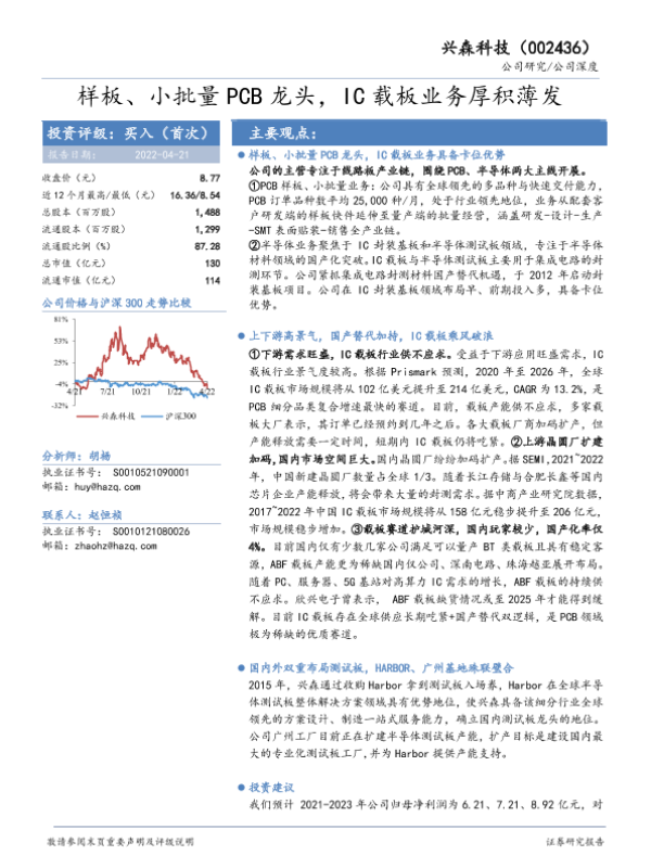 【华安证券】【20220421】样板、小批量PCB龙头,IC载板业务厚积薄发-38页 行业研究