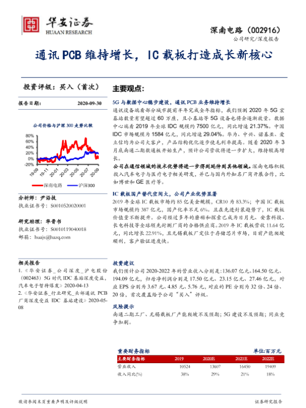【华安证券】【20200930】通讯PCB维持增长,IC载板打造成长新核心-27页 行业研究