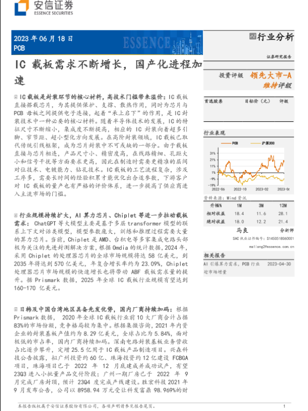 【安信证券】【20230618】PCB行业分析:IC载板需求不断增长,国产化进程加速-24页 行业研究