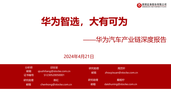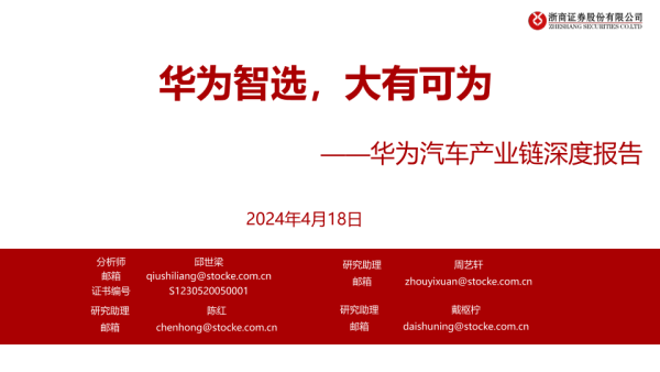 【浙商证券】【20240421】汽车行业华为汽车产业链深度报告:华为智选,大有可为-43页 行业研究