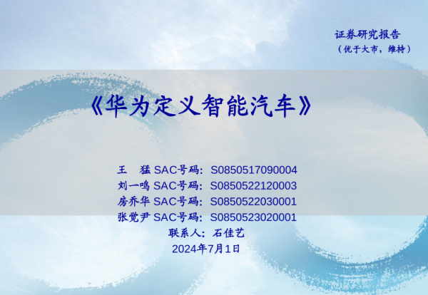 【海通证券】【20240701】汽车行业:华为定义智能汽车-22页 行业研究
