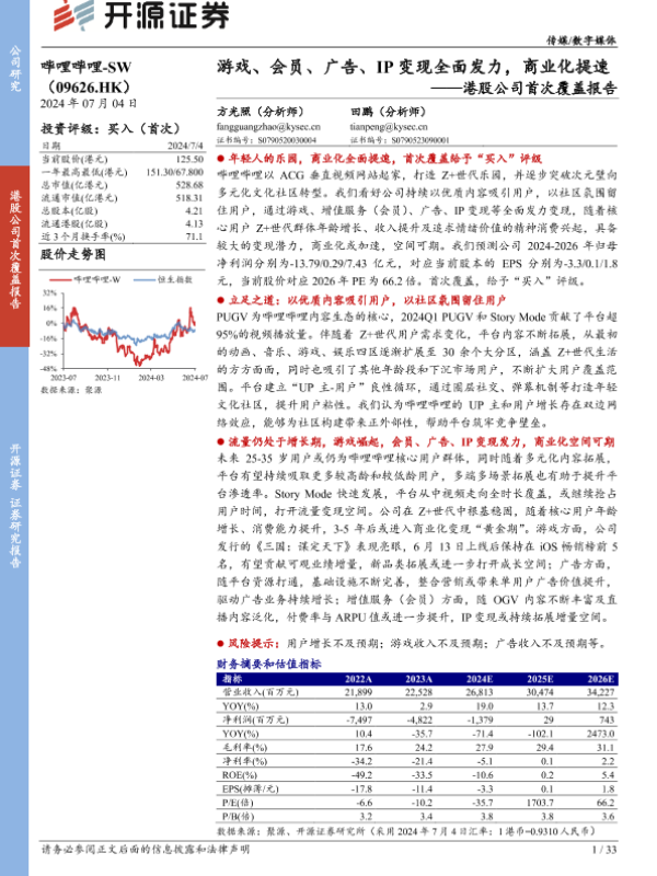 【开源证券】【20240704】港股公司首次覆盖报告:游戏、会员、广告、IP变现全面发力,商业化提速-33页 行业研究