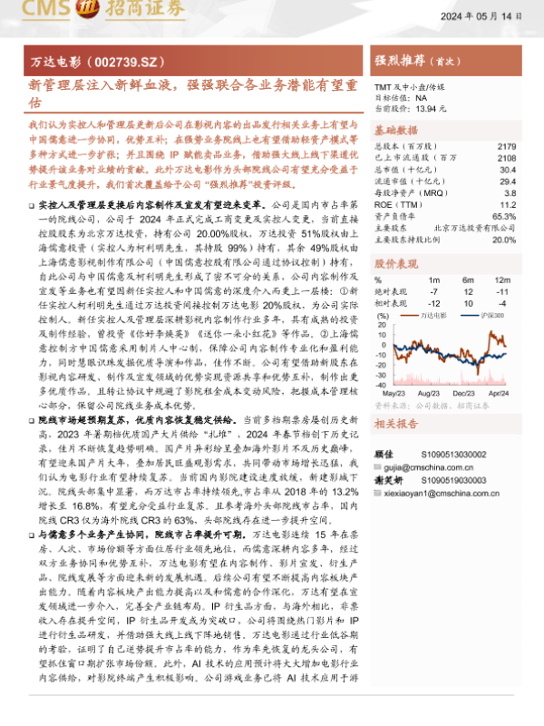 【海通证券】【20240514】万达电影(002739)新管理层注入新鲜血液,强强联合各业务潜能有望重估-27页 行业研究
