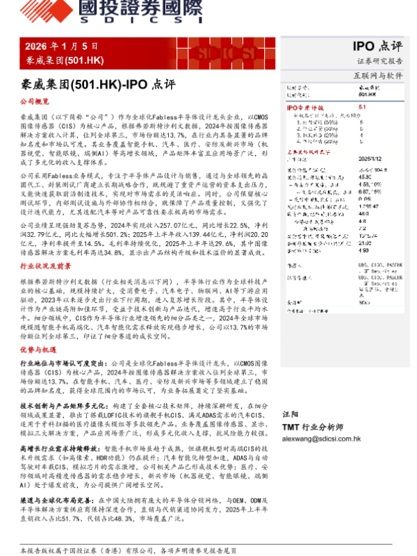 【国投证券(香港)有限公司】【2026】豪威集团(501.HK)-IPO点评-3页 证券期货研究报告