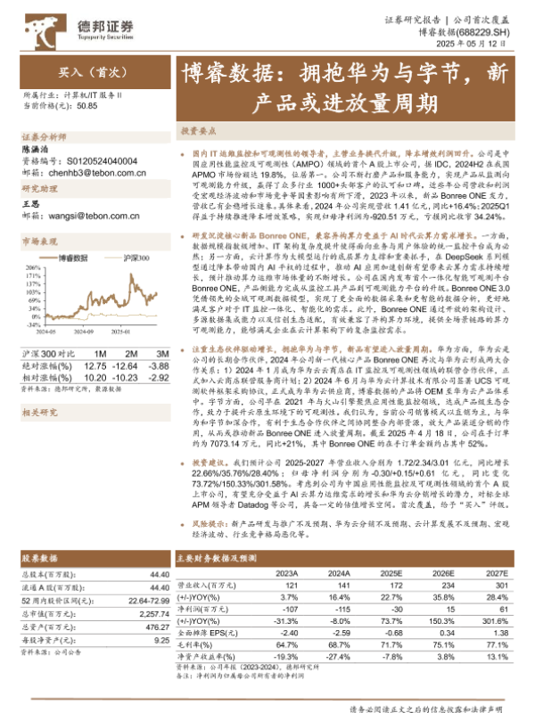 【德邦证券】【20250512】博睿数据:拥抱华为与字节,新产品或进放量周期-27页 证券期货研究报告