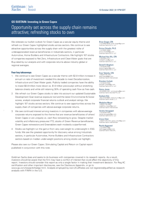 【Goldman Sachs】【20221013】Opportunity set across the supply chain remains attractive; refreshing stocks to own-41页 行业研究