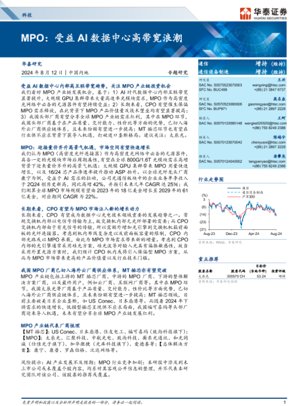 【华泰证券】【20240812】科技行业-MPO:受益AI数据中心高带宽浪潮-26页 行业研究