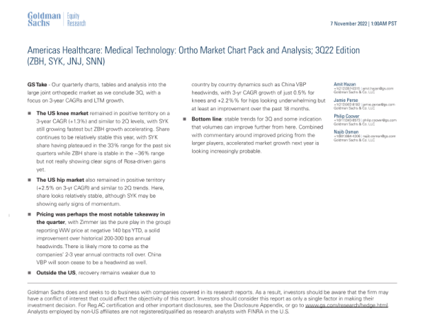 【Goldman Sachs】【20221107】Ortho Market Chart Pack and Analysis-29页 行业研究