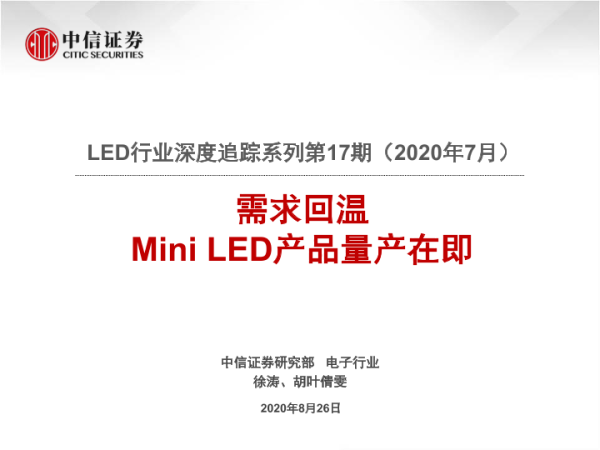 【中信证券】【20200826】LED行业深度追踪系列第17期(2020年7月):需求回温,Mini LED产品量产在即-21页 行业研究