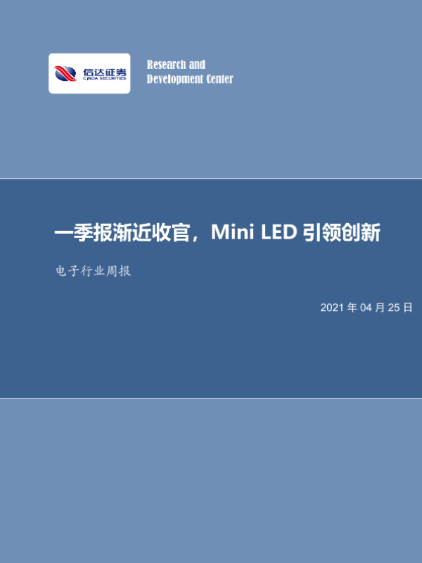 【信达证券】【20210425】20210425-信达证券-电子行业周报:一季报渐近收官,Mini LED引领创新-14页 行业研究