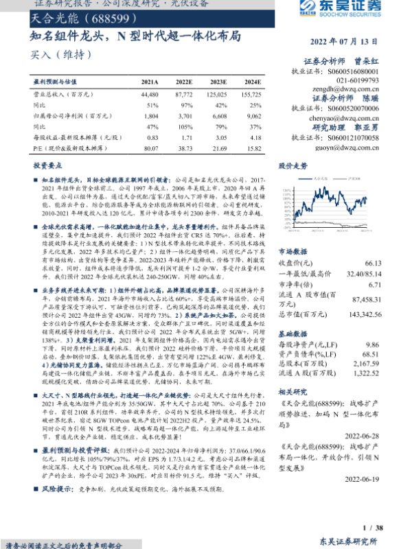 【东吴证券】【20220713】知名组件龙头,N型时代超一体化布局-38页 行业研究