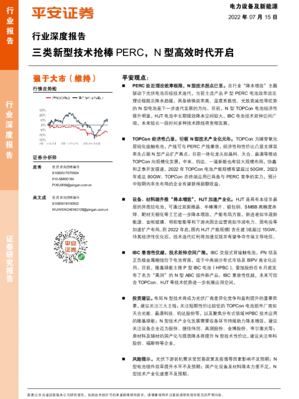 【平安证券】【20220715】电力设备及新能源行业深度报告:三类新型技术抢棒PERC,N型高效时代开启-22页 行业研究