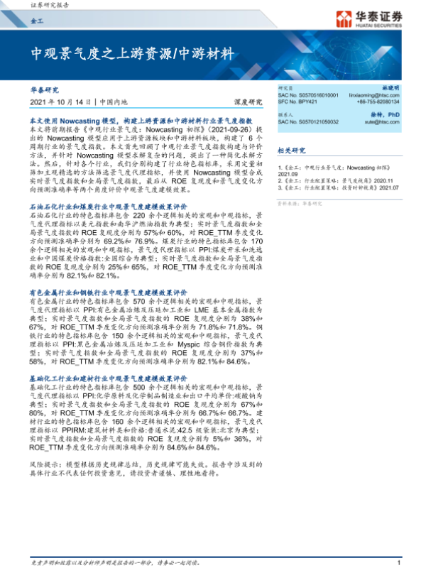 【华泰证券】【20211014】金工深度研究:中观景气度之上游资源中游材料-30页 行业研究