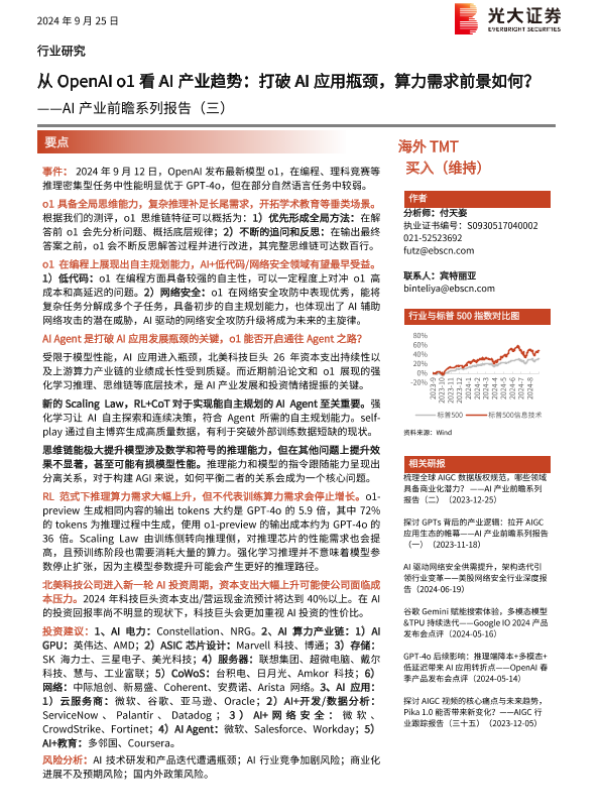 【光大证券】【20240925】海外TMT行业AI产业前瞻系列报告(三):从OpenAI+o1看AI产业趋势,打破AI应用瓶颈,算力需求前景如何?-17页 行业研究
