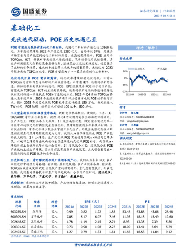 【国盛证券】【20230406】基础化工行业深度:光伏迭代驱动,POE历史机遇已至-33页 行业研究