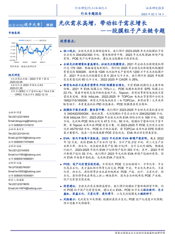 【海通证券】【20230214】化工行业胶膜粒子产业链专题:光伏需求高增,带动粒子需求增长-33页 行业研究