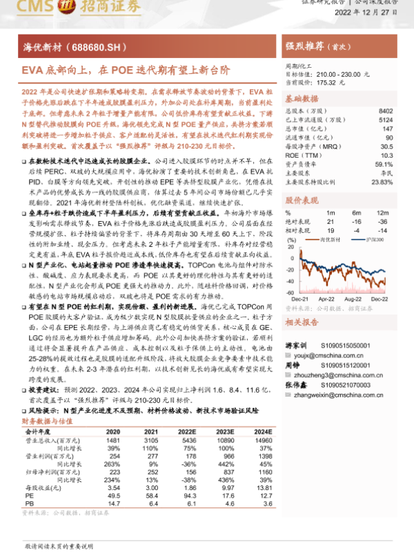 【海通证券】【20221227】EVA底部向上,在POE迭代期有望上新台阶-23页 证券期货研究报告