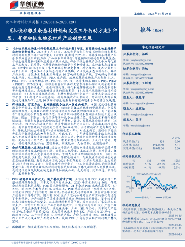 【华创证券】【20230129】化工新材料行业周报:《加快非粮生物基材料创新发展三年行动方案》印发,有望加快生物基材料产业创新发展-48页 行业研究