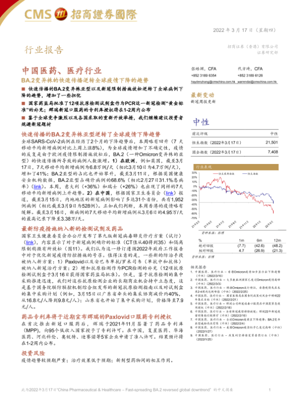 【招商证券国际】【20220317】中国医药、医疗行业:BA.2变异株的快速传播逆转全球疫情下降的趋势-16页 行业研究