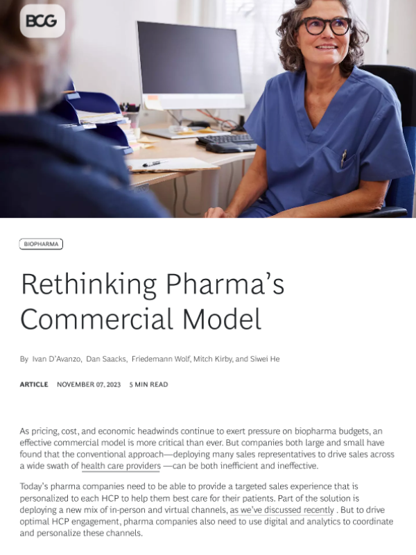 【Boston Consulting Group】【20231107】Rethinking Pharma’s Commercial Model-6页 行业研究