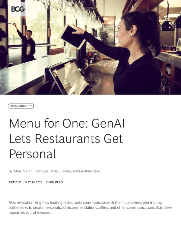 【Boston Consulting Group】【20240514】Menu for One GenAI Lets Restaurants Get Personal-5页 行业研究