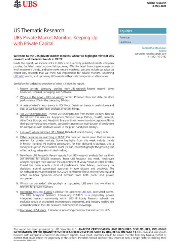 【UBS】【20250508】UBS Private Market Monitor Keeping Up with Private Capital-21页 行业研究