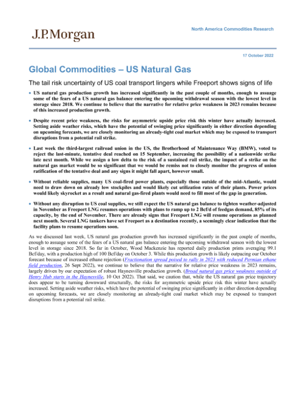 【North America Commodities Research】【20221017】Global Commodities – US Natural Gas The tail risk uncertainty of US coal transport lingers while Freeport shows signs of life-9页 行业研究