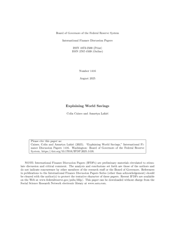 【Colin Caines and Amartya Lahiri】【2025】Explaining World Savings-41页 学术论文