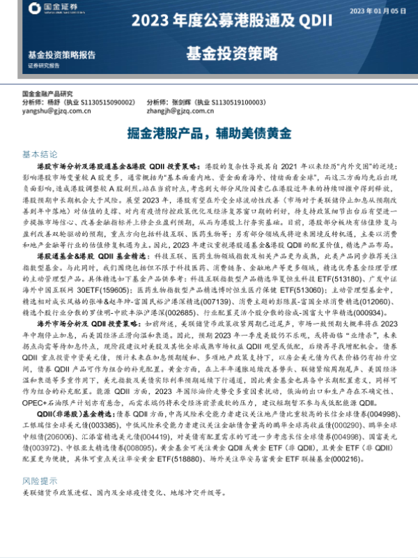 【国金证券】【20230105】2023年度公募港股通及QDII基金投资策略:掘金港股产品,辅助美债黄金-28页 行业研究