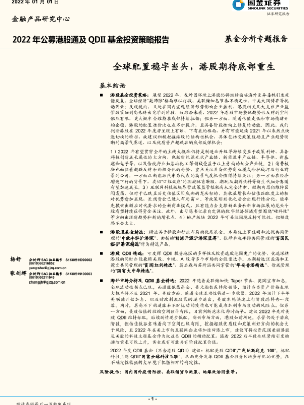 【国金证券】【20220101】2022年公募港股通及QDII基金投资策略报告:全球配置稳字当头,港股期待底部重生-41页 行业研究