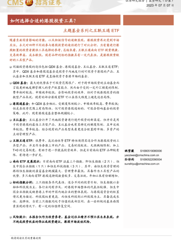 【海通证券】【20230707】主题基金系列之互联互通ETF:如何选择合适的港股投资工具?-18页 行业研究