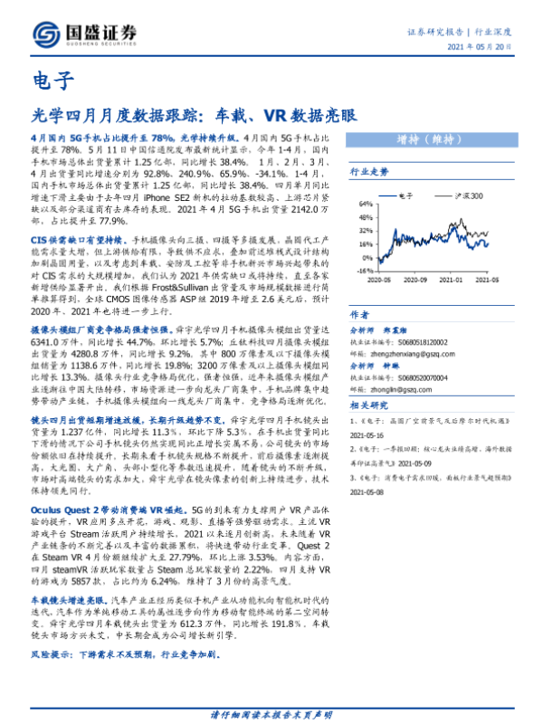 【国盛证券】【20210520】光学四月月度数据跟踪:车载、VR数据亮眼-13页 行业研究
