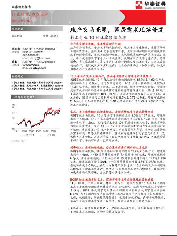 【华泰证券】【20201116】轻工行业10月社零数据点评:地产交易亮眼,家居需求延续修复-6页 行业研究