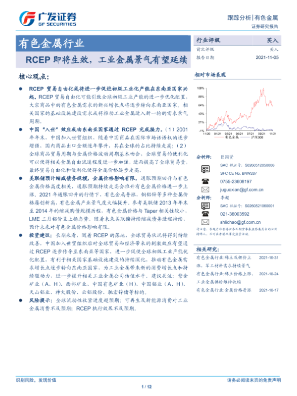 【广发证券】【20211105】20211105-广发证券-有色金属行业跟踪分析:RCEP即将生效,工业金属景气有望延续-12页 行业研究