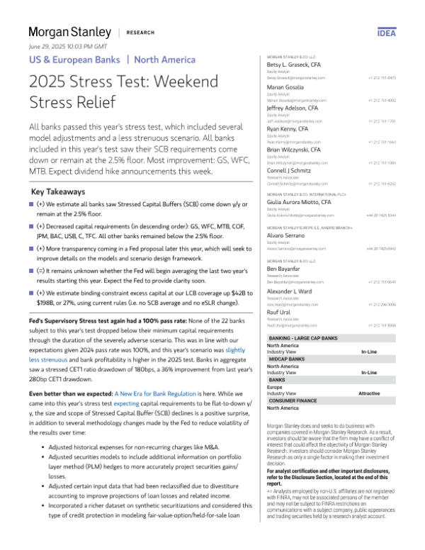 【Morgan Stanley】【20250629】2025 Stress Test Weekend Stress Relief-36页 行业研究